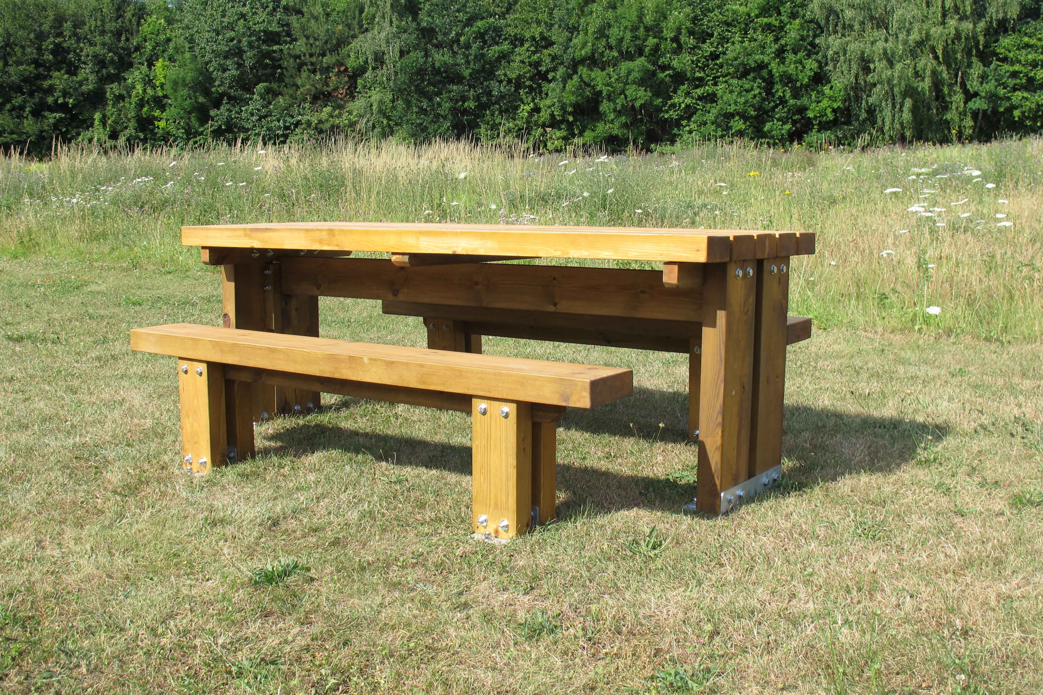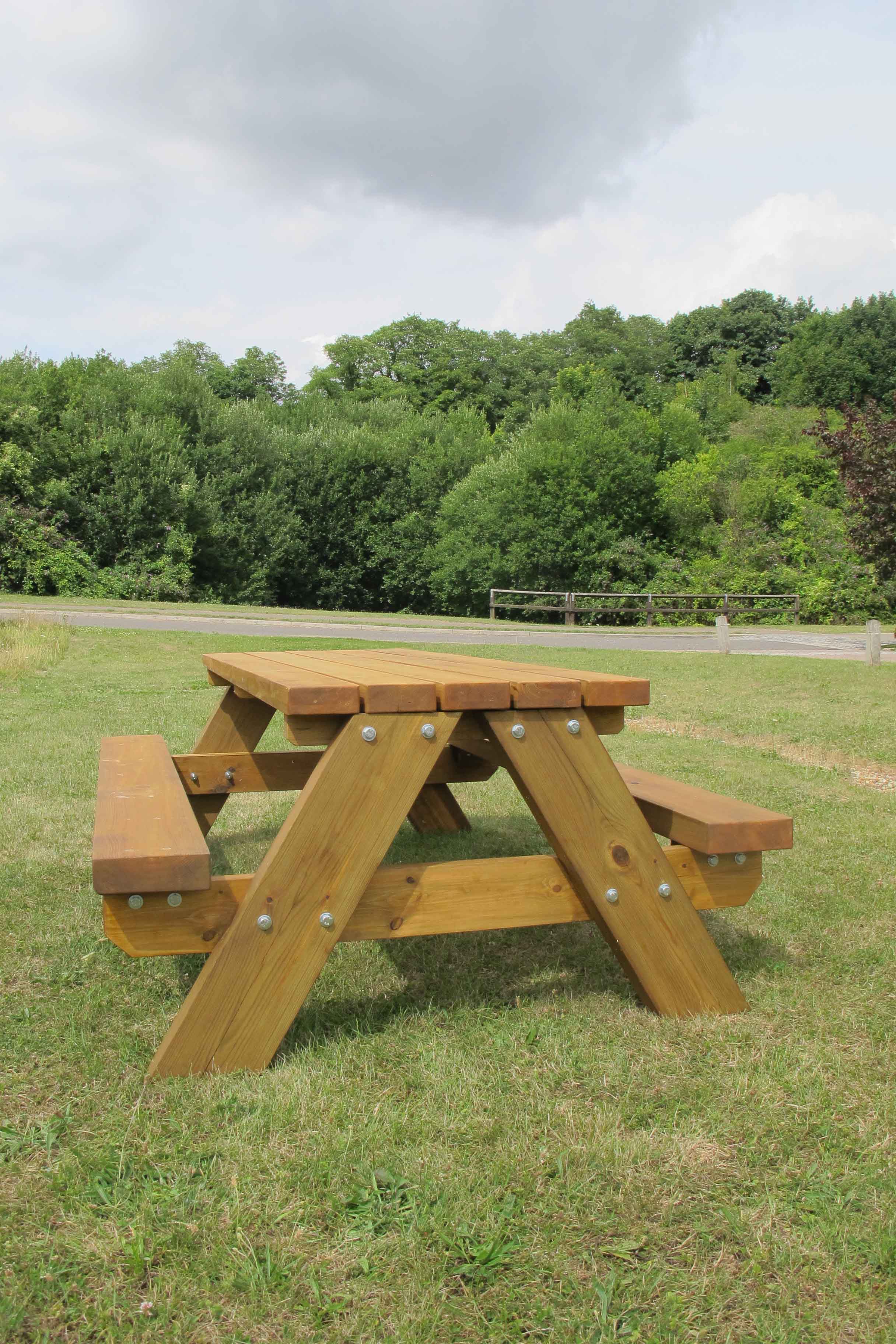 Robust range of softwood timber A-frame picnic tables and independent tables and benches available in adult and junior sizes to complement Stark seats and benches from he same range.